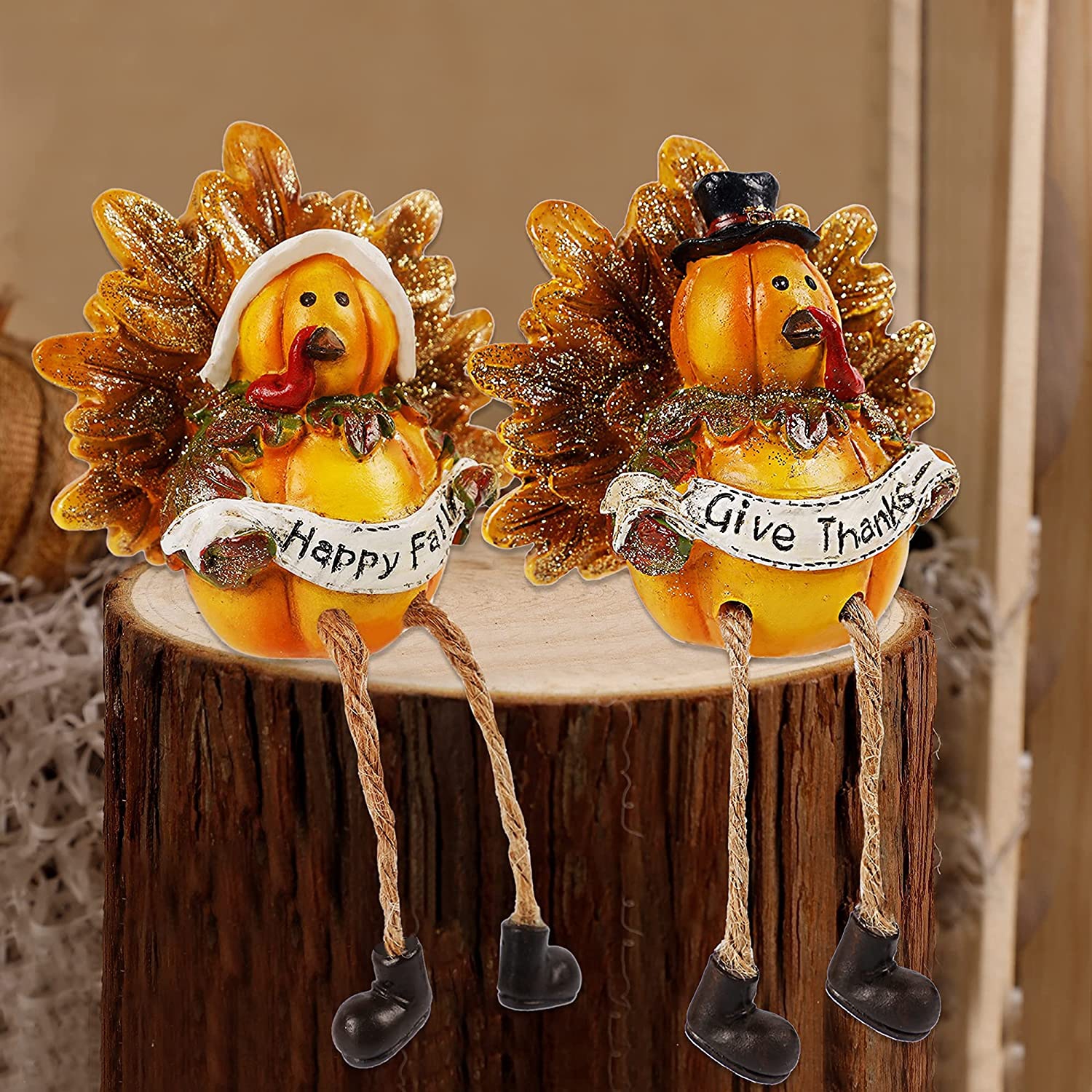 yofit Thanksgiving Turkey Tabletop Centerpieces, Set of 2 Resin Turkeys Couple Fall Decorations for Home Table Fireplace Autumn Harvest Decor (Sitting)