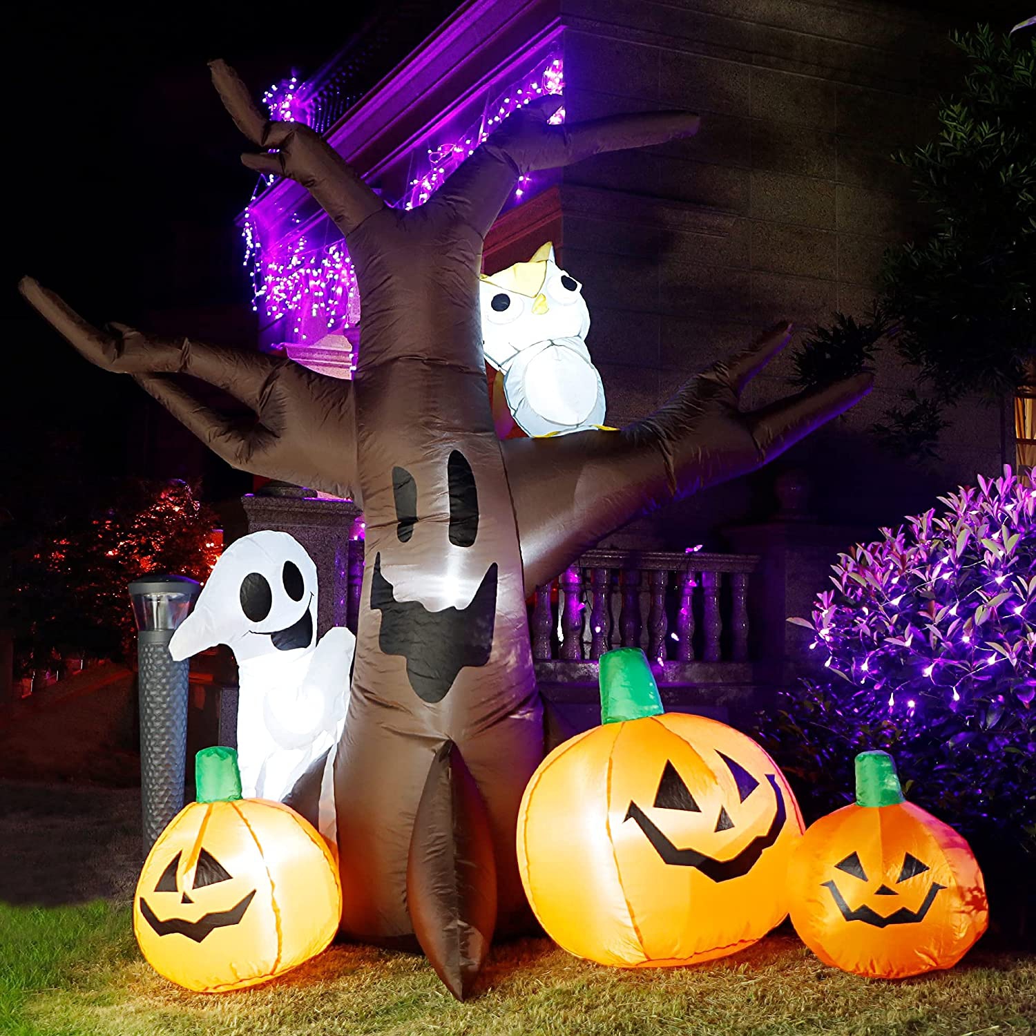 YOFIT Halloween Inflatable 8 Ft Ghost Tree with Pumpkin Owl, LED Lights Blow up Outdoor Decorations for Garden Yard Lawn Holiday Party